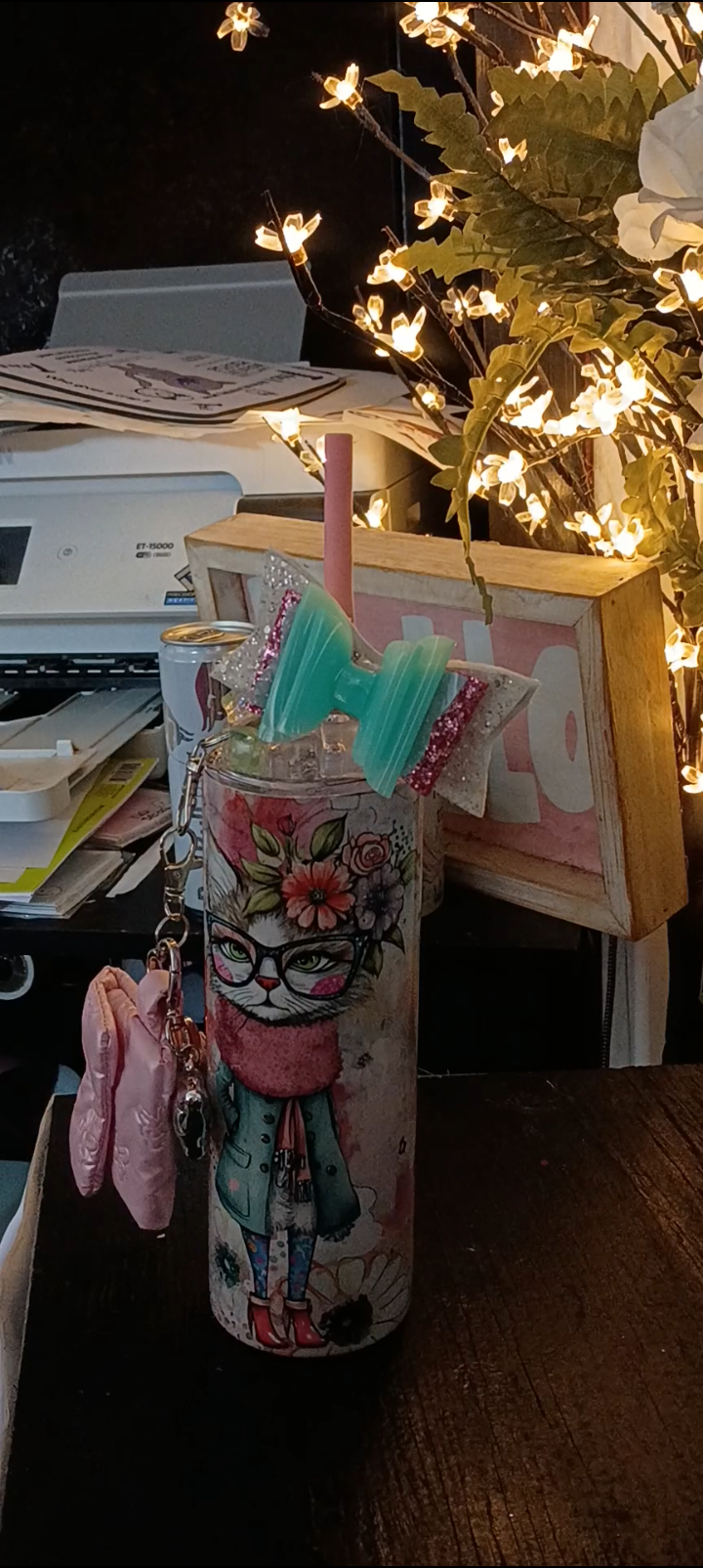 Its a stainless steel tumbler, comes with a decorative topper lid that is completely HAND washable and can be laid flat on towel to dry.